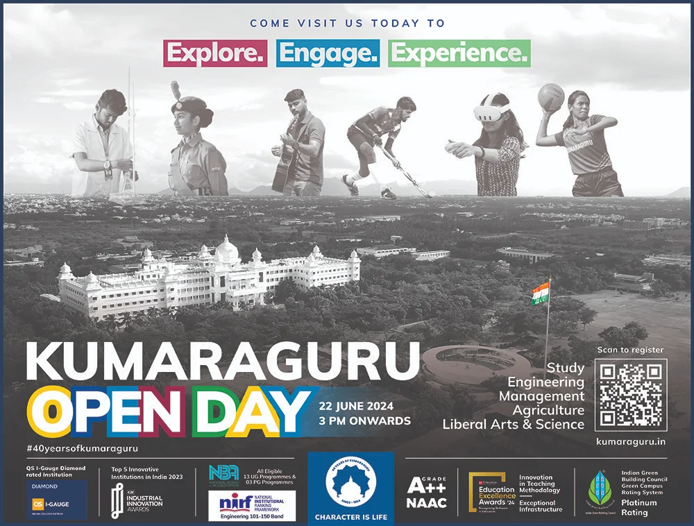 Join us for an immersive experience at Kumaraguru’s Open Day, where you’ll explore the endless opportunities awaiting you. Whether you’re a prospective student, parent, or researcher, this event offers a firsthand glimpse into our dynamic community of learning and innovation.
